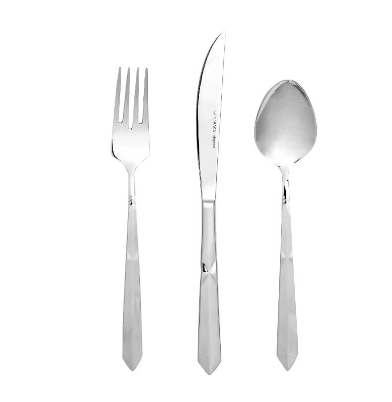 L'élégance de l'ensemble de couverts Karaca Diamond Platin Elegance se cache dans les petits détails. A première vue on remarque les extrémités qui se terminent en pointe. Les motifs triangulaires sur les manches confèrent à l'ensemble un privilège tout particulier. Avec ses couteaux tranchants et ses fourchettes pointues, l’ensemble facilite la dégustation de vos plats délicieux. C'est une ménagère idéale pour accueillir jusqu'à 12 personnes.