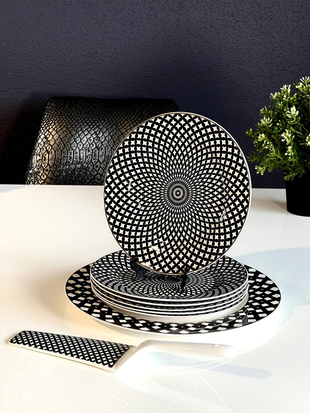 TREND HOME Set Assiettes à dessert noir blanc point 8 pièces
