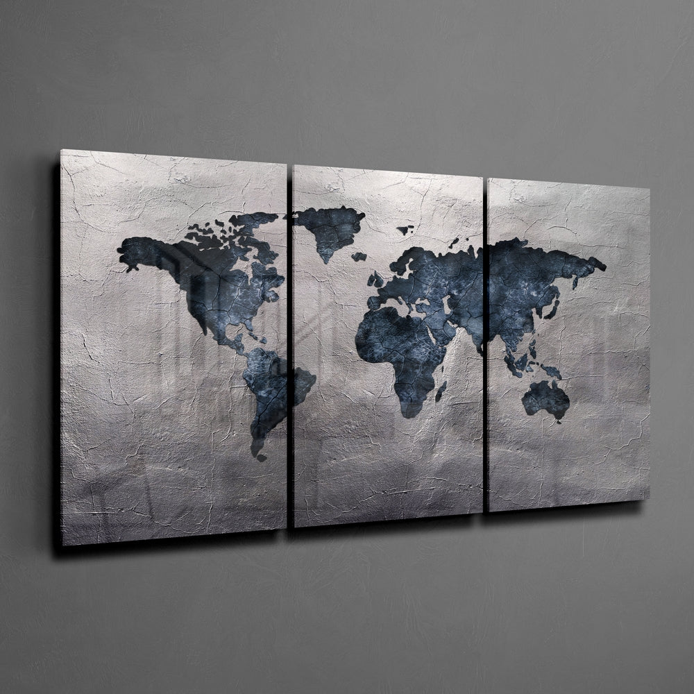Méga Tableau en verre - 3 pièces - World Map