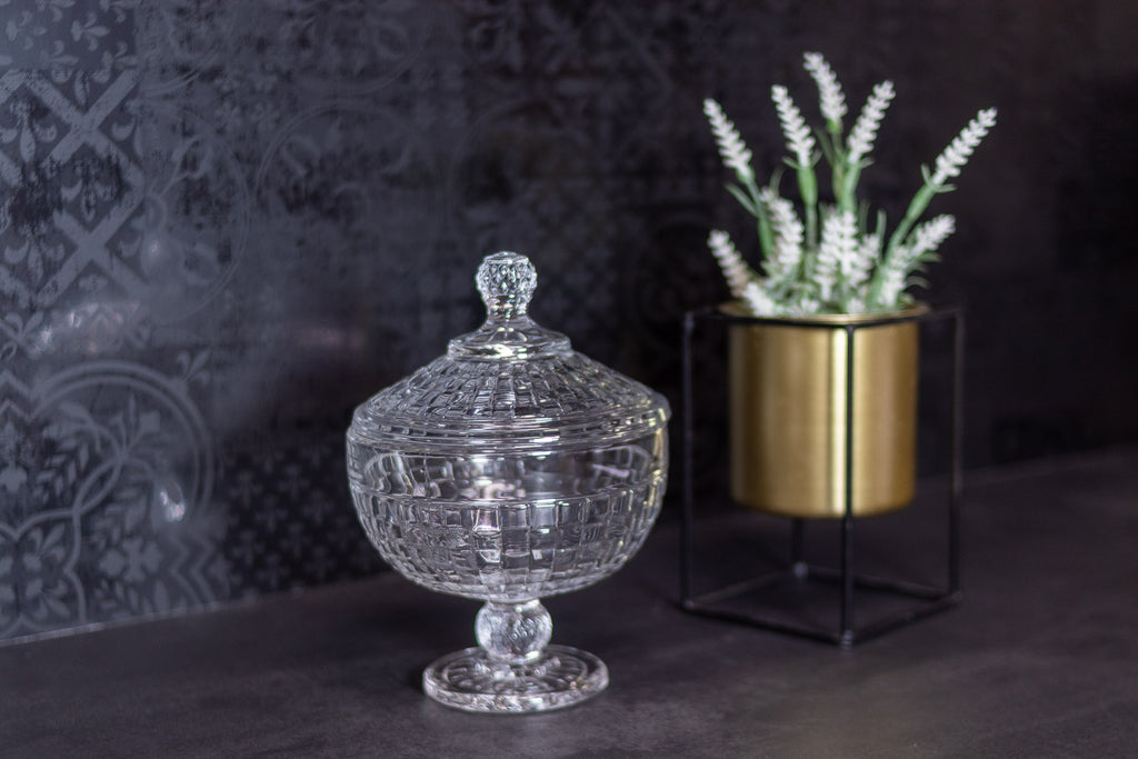 Sucrier bonbonnière en verre avec couvercle